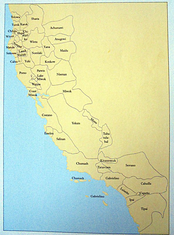 Aan de kust werden schelpdieren genuttigd. Verder was de visvangst belangrijk. De stammen in California werder door de blanke overheersers in rap tempo uitgeroeid, hetzij door overgebrachte ziektes of door geweld. Of ze werden gedwongen opgenomen bij missiposten van de Spaanse missionarissen. Het kwam erop neer dat er behalve veel indianen stierven door de Europese ziektes ze ook nog gebukt gingen onder slavernij en strenge kastijding, waarbij de zweep niet geschuwd werd.