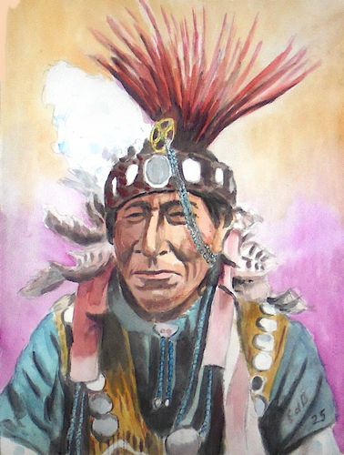 Voordat blanken handel gingen drijven met indianen en bv. de kralenversiering in zwang kwam, droegen de indianen versieringen van stekelvarkenpennen op de kleding en verierselen van been of schelp. Hierbij mijn versie van zo'n indiaan in die tijd.